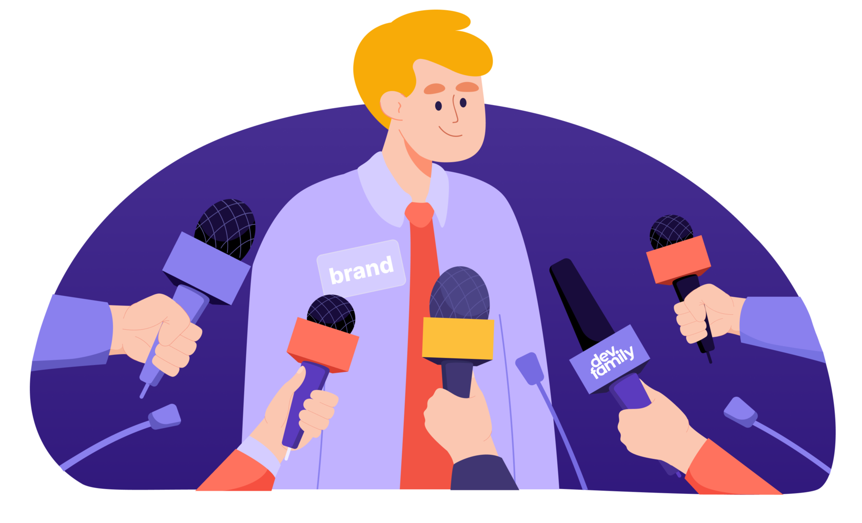 Снова приведу пример из жизни нашей компании. Вот есть у нас бренд dev.family, упакованный и красивый. Его знают и узнают по мерчу, презентациям, оформлению соцсетей и так далее.